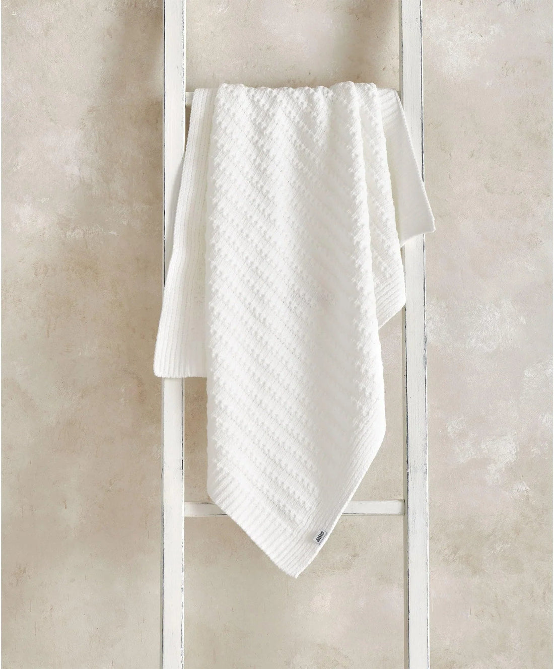 Super-soft and cosy white chenille blanket featuring perfectly woven stripe knit detail. Machine washable. Why...