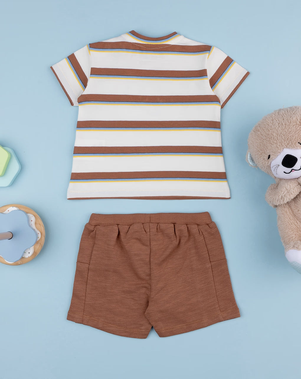 Casual 2-piece jersey set for kids. The item consists of a white and brown striped...