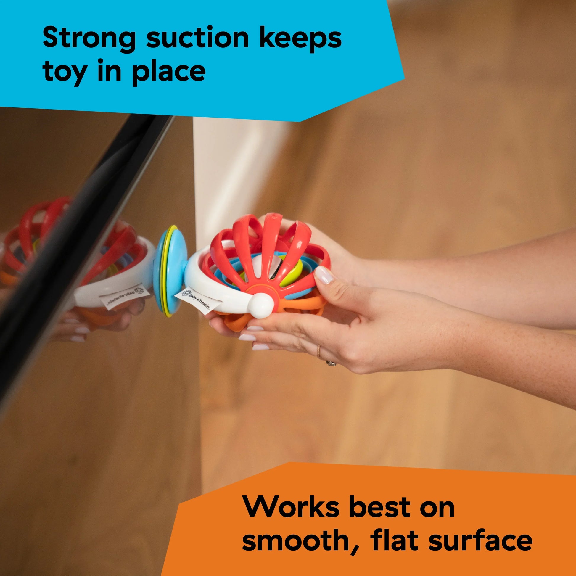 From mealtime to travel time, your baby will be utterly captivated by Baby Einstein’s Sticky Spinner toy. As this table toy spins and swirls, the brightly colored loops will whip up a visually stimulating experience. See baby focus as they curiously watch the inner-ball and loops spin in opposite directions. Those colorful bands are fun to grab and spin, which will help encourage hand-eye coordination and fine motor skills. The powerful suction cup base keeps the spinner in place whenever you need to entertain your squirmy baby. Use it as a high chair toy, or toss it in the diaper bag to have frustration-free play on hand. Your baby’s fascinated little fingers will keep this world of color going round and round! 3rd party safety tested and approved. From the #1 Manufacturer of Baby and Infant Toys* (*Circana, US Dollar Sales, Jan-Dec ‘24).