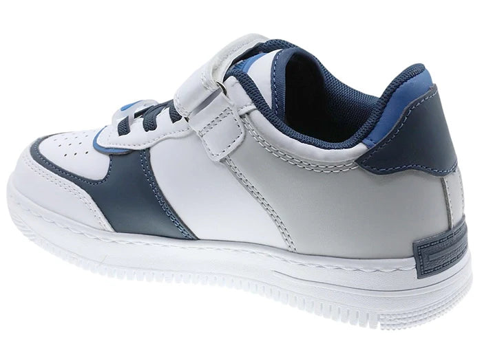 Juvenile shoe, made of synthetic leather. Fastening system with Velcro and elastic for easy wearing and adjustment. Non-slip sole.