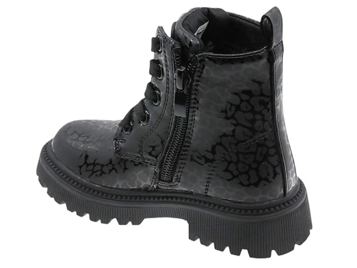 Synthetic Black Leather Boot with Printed detail