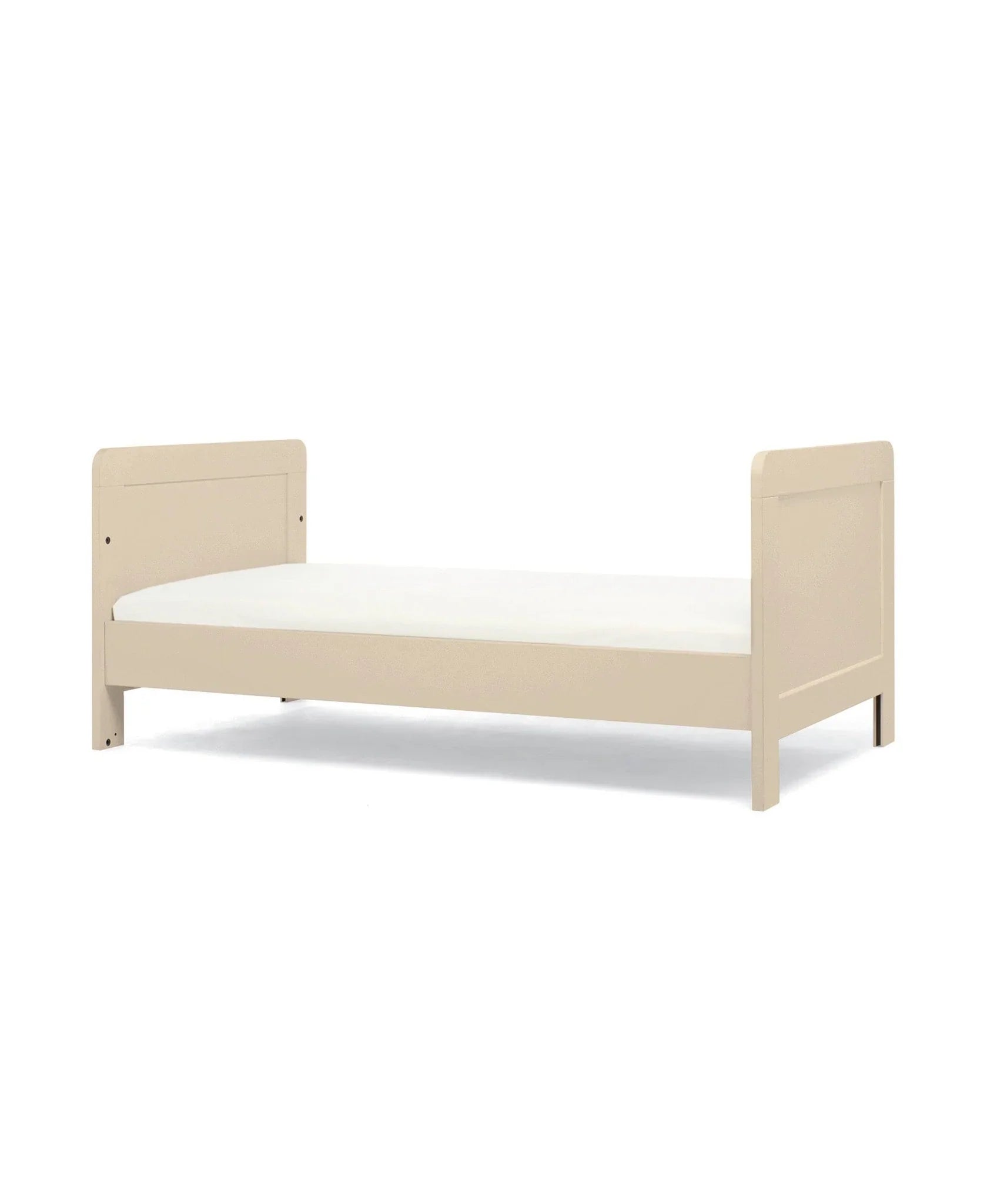 Cotbed with Hampden signature clean, minimalist design, in shade Cashmere, a soft neutral that pairs well with a range of interiors to offer a sophisticated and calming atmosphere. See baby from newborn into toddler years and beyond with this cotbed that converts easily from cot to toddler bed, With 3 adjustable cot base heights to ensure baby is safe as they grow bigger and become more mobile.