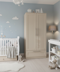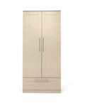 Hampden's double wardrobe in shade Cashmere, a soft neutral that pairs well with a range of interiors to offer a sophisticated and calming atmosphere. With chic metal handle details and a clean, minimalist design.