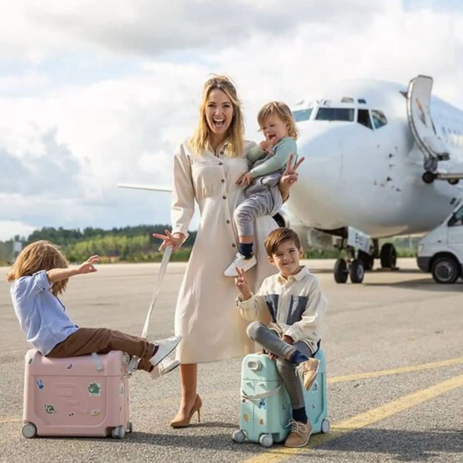 Transform your family travels with this premium ride-on suitcase, officially approved by airlines