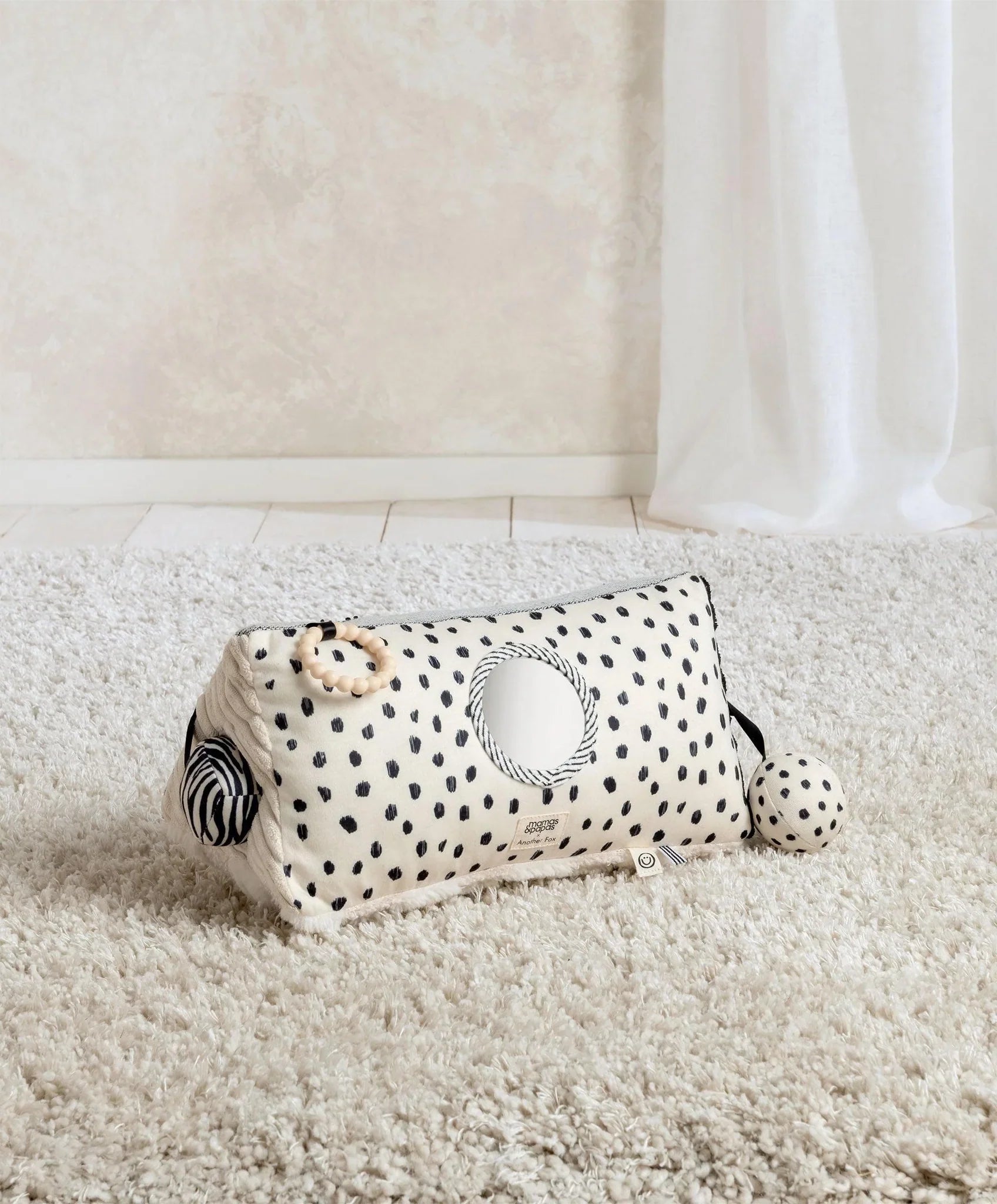 Designed to catch little eyes from day one, this activity-packed triangle features bold black-and-white patterns to support early visual development. Its distinct, playful prints - by independent fashion brand Another Fox - and three interactive sides are full of surprises, including crinkles, chimes, textures and hanging toys to squeeze, grasp and explore. Perfect for encouraging baby to reach and using for tummy time fun, it helps build strength while turning playtime into a mini adventure.