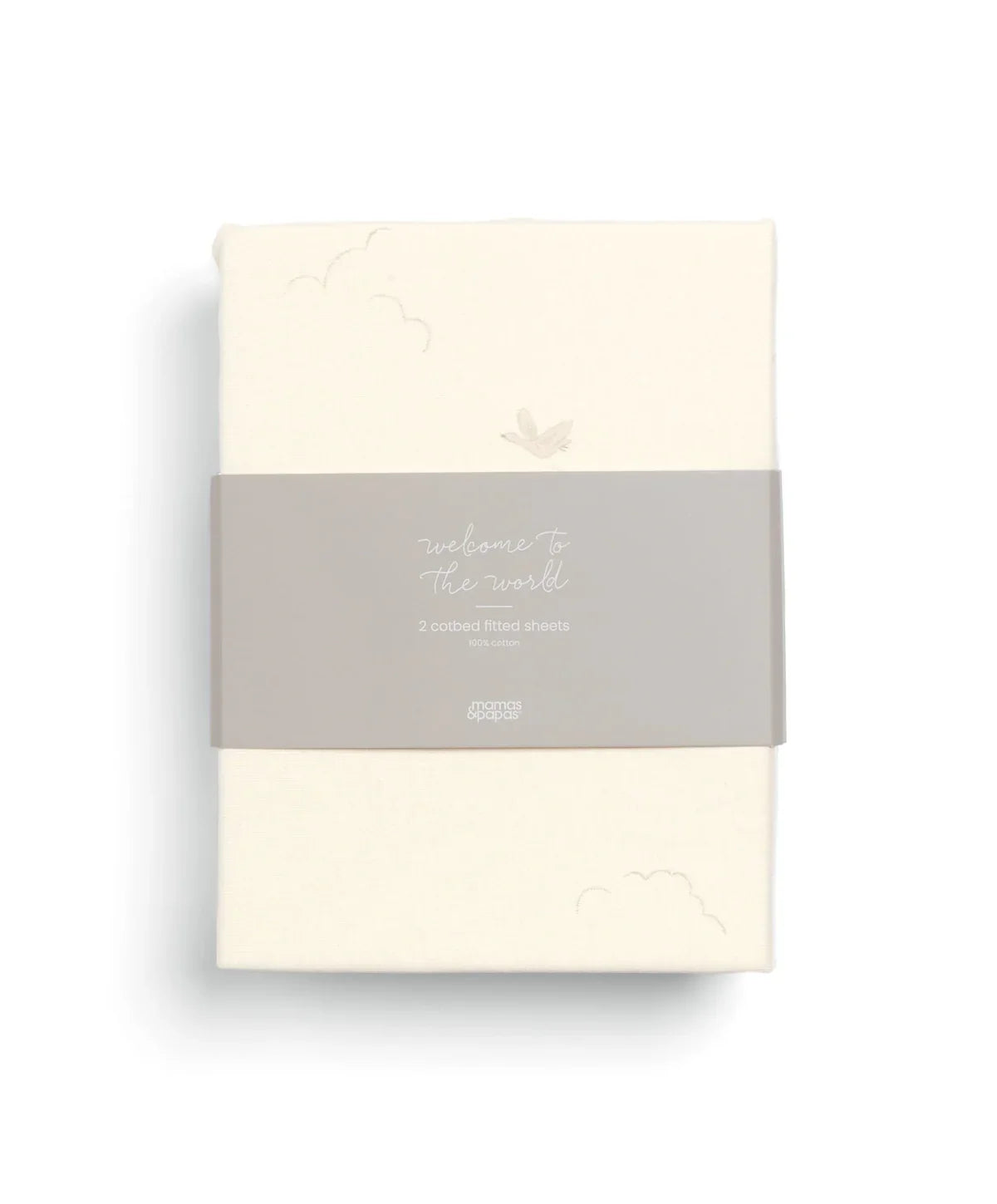 Cotbed Fitted Sheets (2 pack) Welcome to the World Duckling - Cream