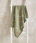 A playful safari-themed jacquard blanket. Crafted from 100% soft cotton, it features the greats of the animal kingdom set against a sage green base. Machine washable.