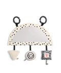 With bold black-and-white patterns to support early visual focus, this sensory-packed car toy turns every journey into an adventure. Part of our exclusive Mamas & Papas x Another Fox collection, it features a baby-safe mirror and a trio of 3D hanging toys with crinkles, rattles and squeakers to keep little hands, eyes and minds busy. With stimulating textures and sounds to discover, it’s perfect for sparking imagination on the go. Compatible for use in most cars, simply use its C-rings to hook onto car headrests.