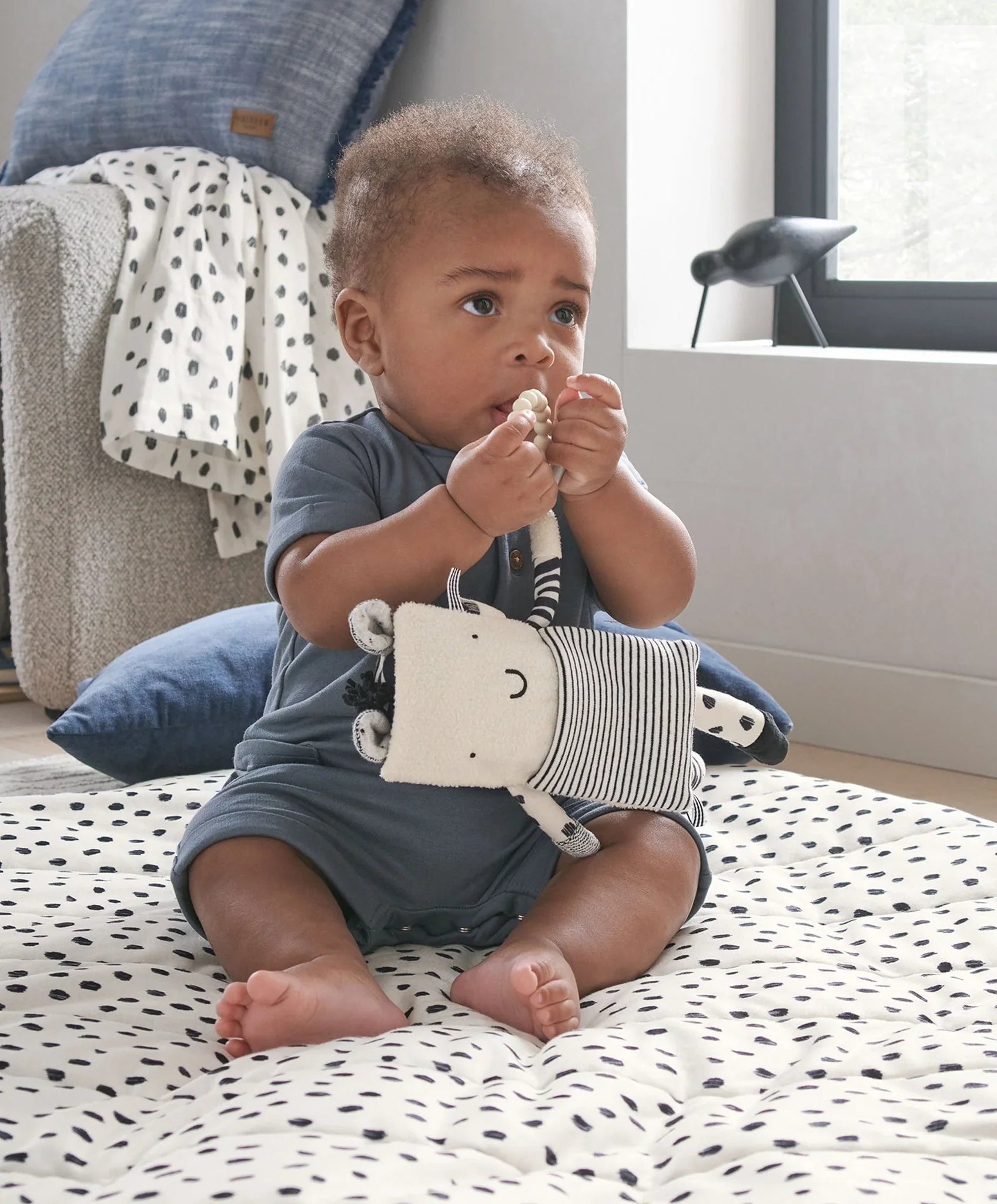 With bold black-and-white patterns to spark visual focus from day one, this sensory zebra is more than just a cuddle companion. Part of our exclusive Mamas & Papas x Another Fox collection, this stripey sidekick is full of surprises – textured flip faces, jittery pull tail, hidden mirror, rattle, and taggies, all designed to excite curious little hands. Add in soothing teething rings and soft, textured fabrics, and you’ve got the ultimate on-the-go pal for comfort, discovery and play.