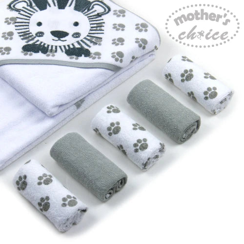 Lion Hooded Towel with 5 Washcloths