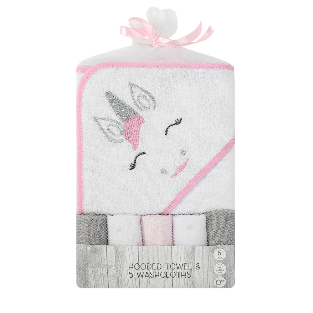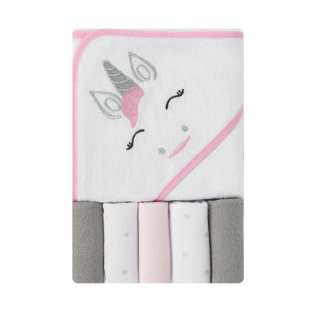 Unicorn Hooded Towel with 5 Washcloths