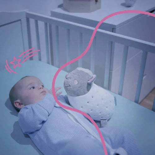 Badabulle Sheep Plush Musical Projection Night Light is a gentle way to help children sleep soundly. It illuminates the ceiling with colorful stars and plays 10 high-quality melodies and sounds (heartbeats and nature). The design is adorable and perfect for children.