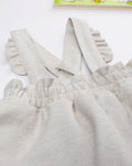 Adorable girls' overalls and skirt. The piece is all light brown with crossed straps at the back, embellished with matching frills and various embroidery. The fit is relaxed and regular. These girls' overalls are suitable for casual/refined occasions. Accessories not for sale. The package contains the item of clothing only.