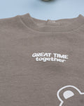 Casual boys' sweatshirt. The piece features a brown base with a matching animal print. The snap buttons on the back ensure a relaxed and practical fit. This boys' sweatshirt is suitable for casual occasions and easy to combine. Accessories not for sale. The package contains the item of clothing only.