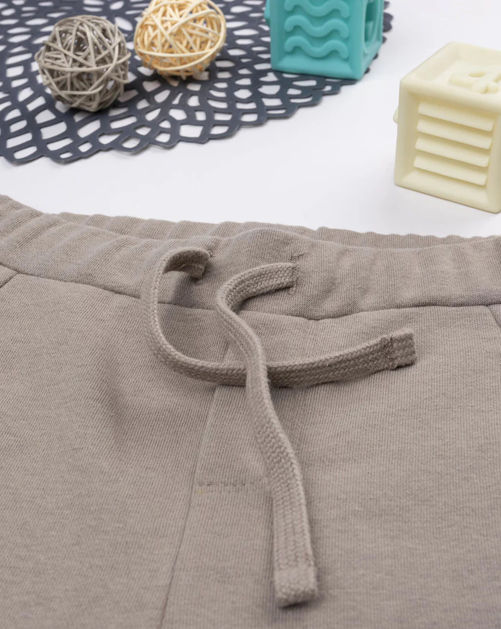 Casual French terry trousers for boys. They come in all-brown with side pockets. The fit is relaxed and adjustable thanks to a drawstring waistband with a matching drawstring. These boys' trousers are suitable for casual occasions and are easy to combine. Accessories not for sale. The package contains the item of clothing only.