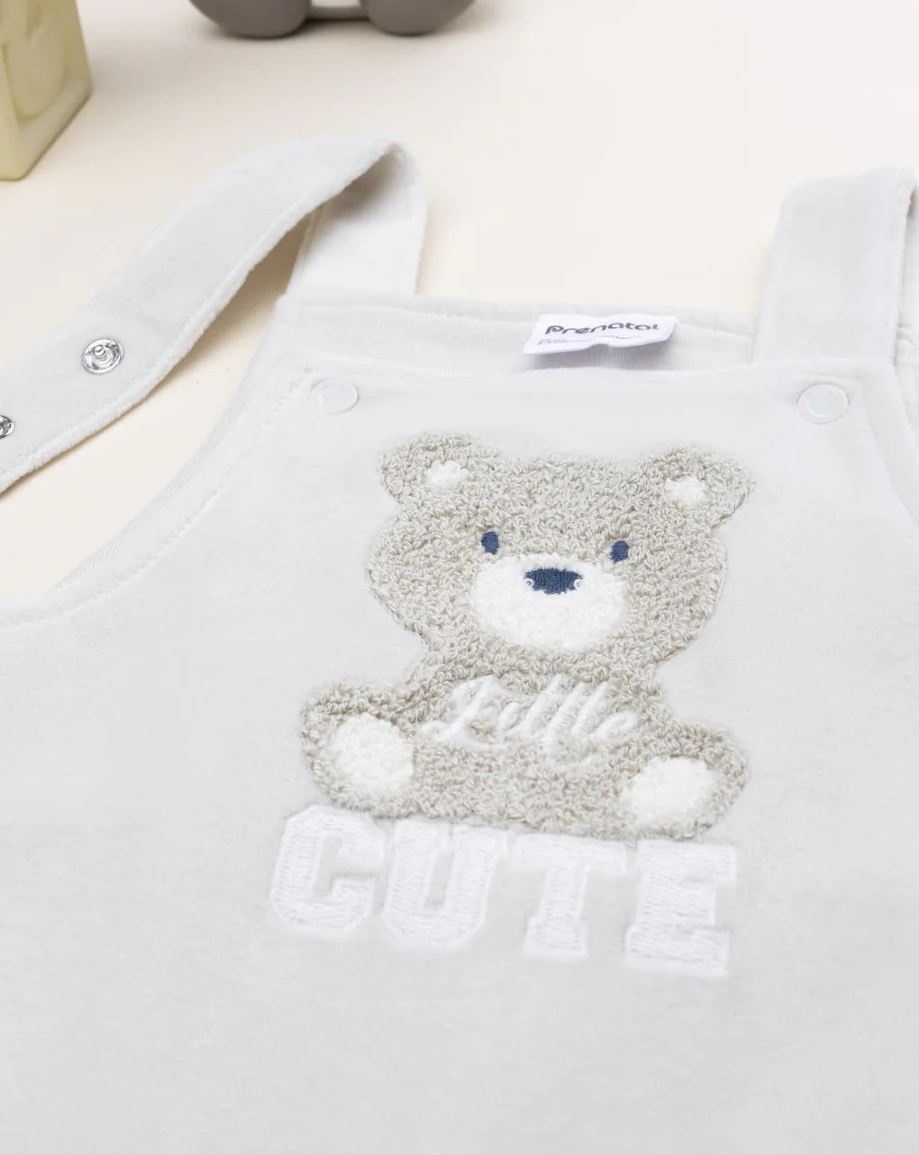 Cute boys' overalls. The one-piece garment comes in all-light brown with a matching teddy patch. The snap closure provides a relaxed, practical fit. Made from OEKO-TEX® cotton, tested for harmful substances, it guarantees high safety. Accessories are not for sale. The package contains the item of clothing only.