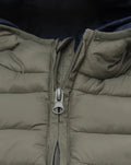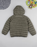 Casual hooded jacket for boys in recycled polyester. The piece comes in all-military green with side pockets. The front zip closure provides a relaxed and practical fit. This boys' jacket is suitable for casual occasions. Accessories not for sale. The package contains the item of clothing only.