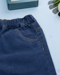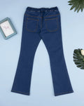 Casual flared jeans for girls. The item is made of all-blue denim with a small heart embroidery. It features shaped pockets on the front and patch pockets on the back. The fit is relaxed and adjustable thanks to the elastic waistband. These girls' jeans are suitable for casual occasions and are easy to combine. Accessories not for sale. The package contains the item of clothing only.