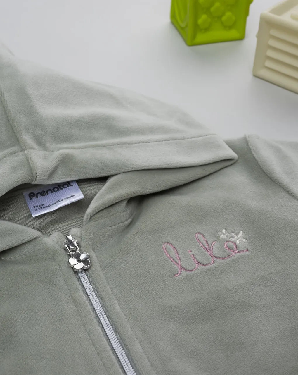 Casual chenille hoodie for girls. The piece is all-green with a small matching embroidery. The front zip has a loose, practical fit. This girl's sweatshirt is suitable for casual occasions and can be easily combined. Accessories not for sale. The package contains the item of clothing only.