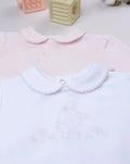 A cute two-pack of chenille outfits for girls. The pieces include a long-sleeved sweater with snaps and feet-on trousers in white and light pink. The fit is loose and practical. The item is made of OEKO-TEX® cotton, tested for harmful substances and ensuring high safety. Accessories not for sale. The package contains the clothing item only.