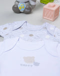 Basic 2-pack of long-sleeved bodysuits for boys. The pieces feature a gray and white base with contrasting prints. The snaps at the crotch and halter neck provide a loose, practical fit. The item is made from OEKO-TEX® cotton, tested for harmful substances and ensuring high safety. Accessories are not for sale. The package contains the item only.