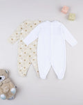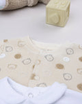Pack of 2 baby boys' chenille onesies. These one-piece onesies feature a white and light yellow base with a matching teddy bear print. Snaps on the front, back, and crotch ensure a comfortable, comfortable fit. Accessories not for sale. The package contains the clothing item only.