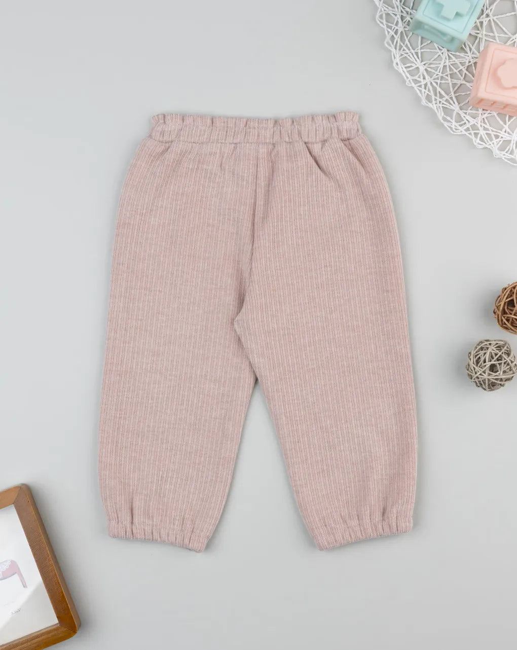 Casual ribbed trousers for girls. The piece comes in all-light pink with double patch pockets and matching patches. The fit is relaxed and adjustable thanks to the elastic waistband. These girls' trousers are suitable for casual occasions and are easy to combine. Accessories not for sale. The package contains the item of clothing only.