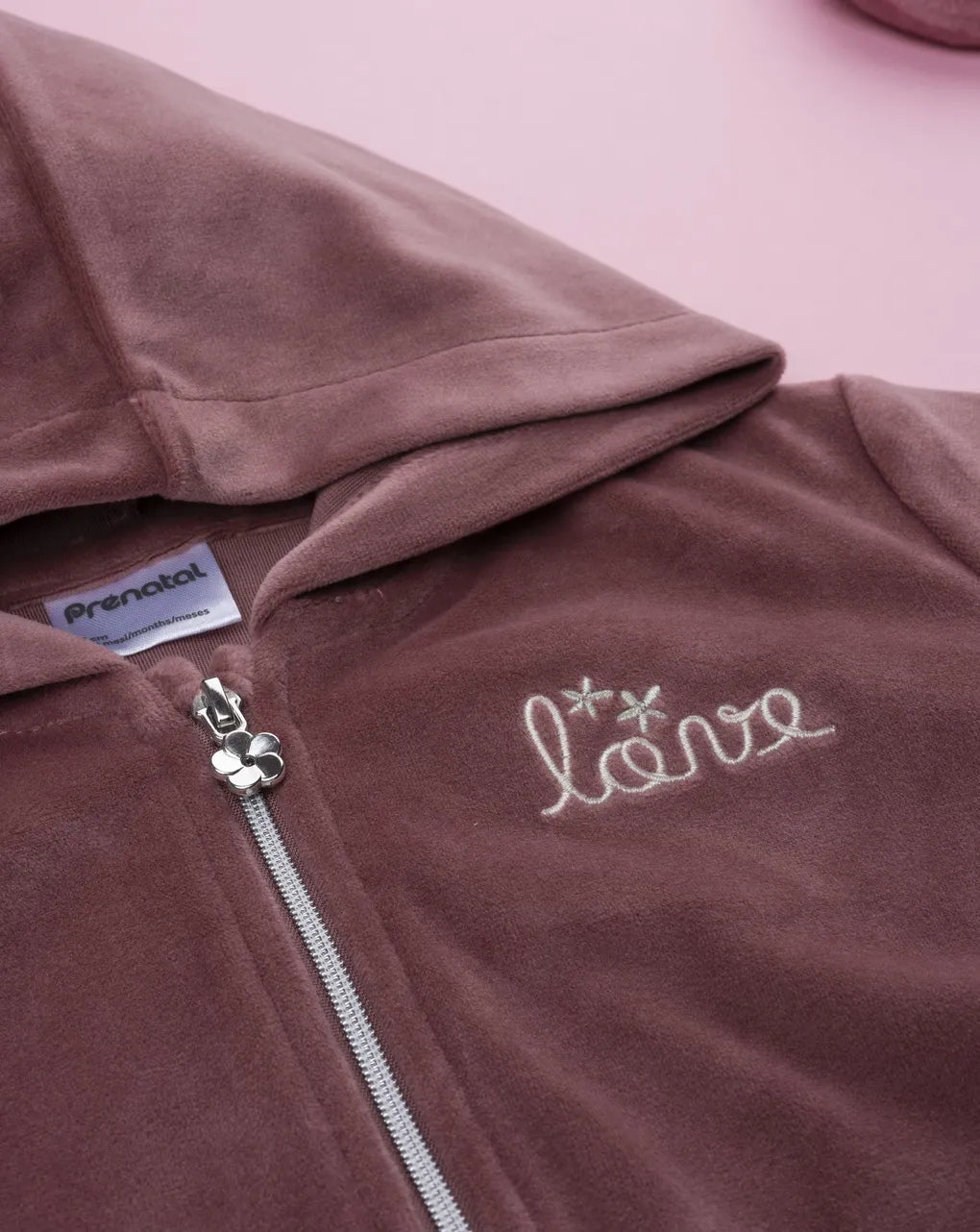 Casual chenille hoodie for girls. The piece comes in all-over antique pink with a small matching embroidery. The front zip has a loose, practical fit. This girls' sweatshirt is suitable for casual occasions and can be easily combined. Accessories not for sale. The package contains the item of clothing only.