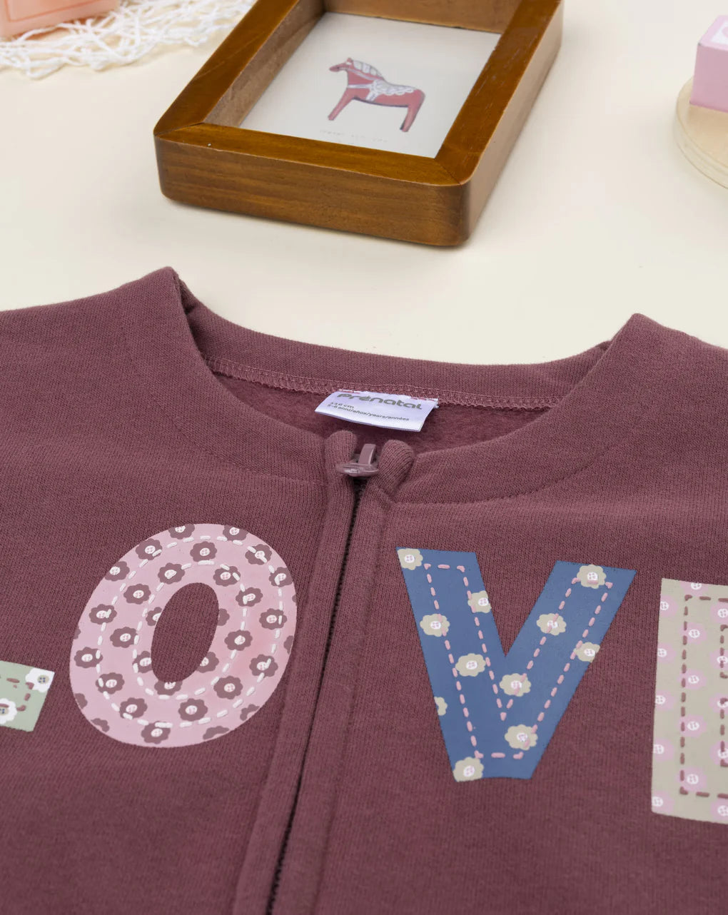 Casual girls' sweatshirt. The piece comes in all-over antique pink with a matching Love print. The front zip has a loose, practical fit. This girls' sweatshirt is suitable for casual occasions and easy to mix and match. Accessories not for sale. The package contains the item of clothing only.
