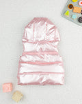 Girls' padded vest. This solid metallic pink piece features a hood. It fastens with a practical front zip. It has a soft, comfortable fit. Accessories are not for sale. The package contains the garment only.