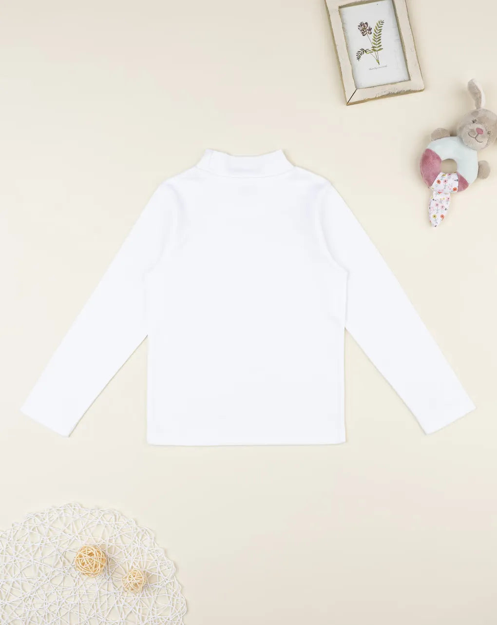 Casual, long-sleeved turtleneck for boys. The piece is all white. The fit is relaxed and regular. The turtleneck is suitable for casual occasions and easy to combine. Accessories not for sale. The package contains the item of clothing only.