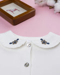 A casual girl's shirt. The piece is all white with matching embroidery on the Peter Pan collar. The fit is relaxed and practical thanks to matching buttonholes. This girl's shirt is suitable for casual occasions and easy to combine. Accessories not for sale. The package contains the item of clothing only.