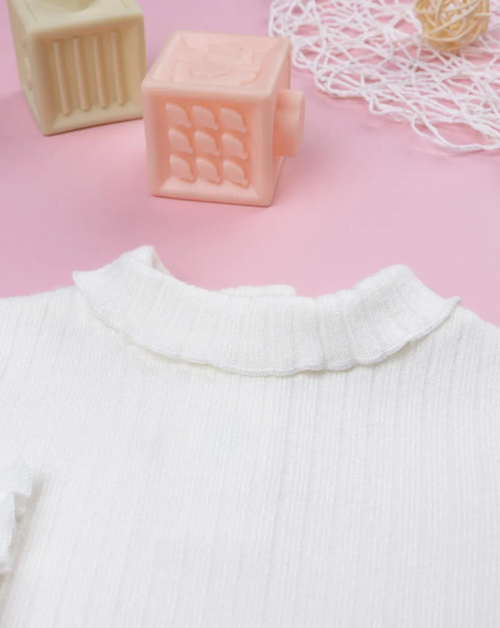 Basic ribbed turtleneck sweater for girls. The piece is all white. The snap buttons on the back make it comfortable and practical. The turtleneck sweater is suitable for casual occasions and can be easily combined. Accessories not for sale. The package contains the item of clothing only.