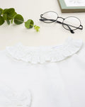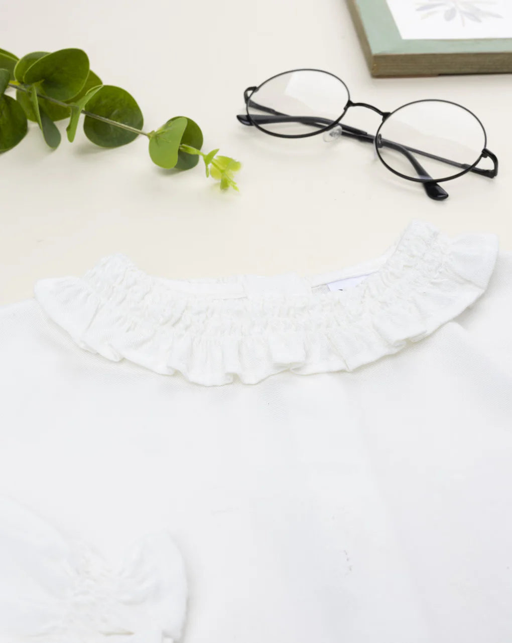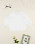 Casual long-sleeved shirt for girls. The item is all white with a matching flutter collar. The fit is relaxed and practical thanks to matching buttonholes on the back. This girl's shirt is suitable for casual/refined occasions. Accessories not for sale. The package contains the item of clothing only.