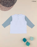 Casual, long-sleeved T-shirt for boys. The white shirt features a print that matches the gray sleeves. The snap buttons on the back ensure a relaxed, practical fit. The T-shirt is suitable for casual/sporty occasions. Accessories are not for sale. The package contains the item of clothing only.