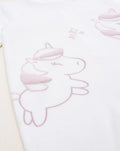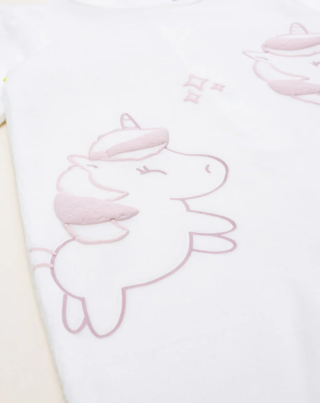 A sweet little girl's chenille onesie. This one-piece, footed onesie is all white with a matching print. The snaps at the back and crotch provide a soft, practical fit. Made from OEKO-TEX® cotton, tested for harmful substances, it guarantees high safety. Accessories are not for sale. The package contains the clothing item only.