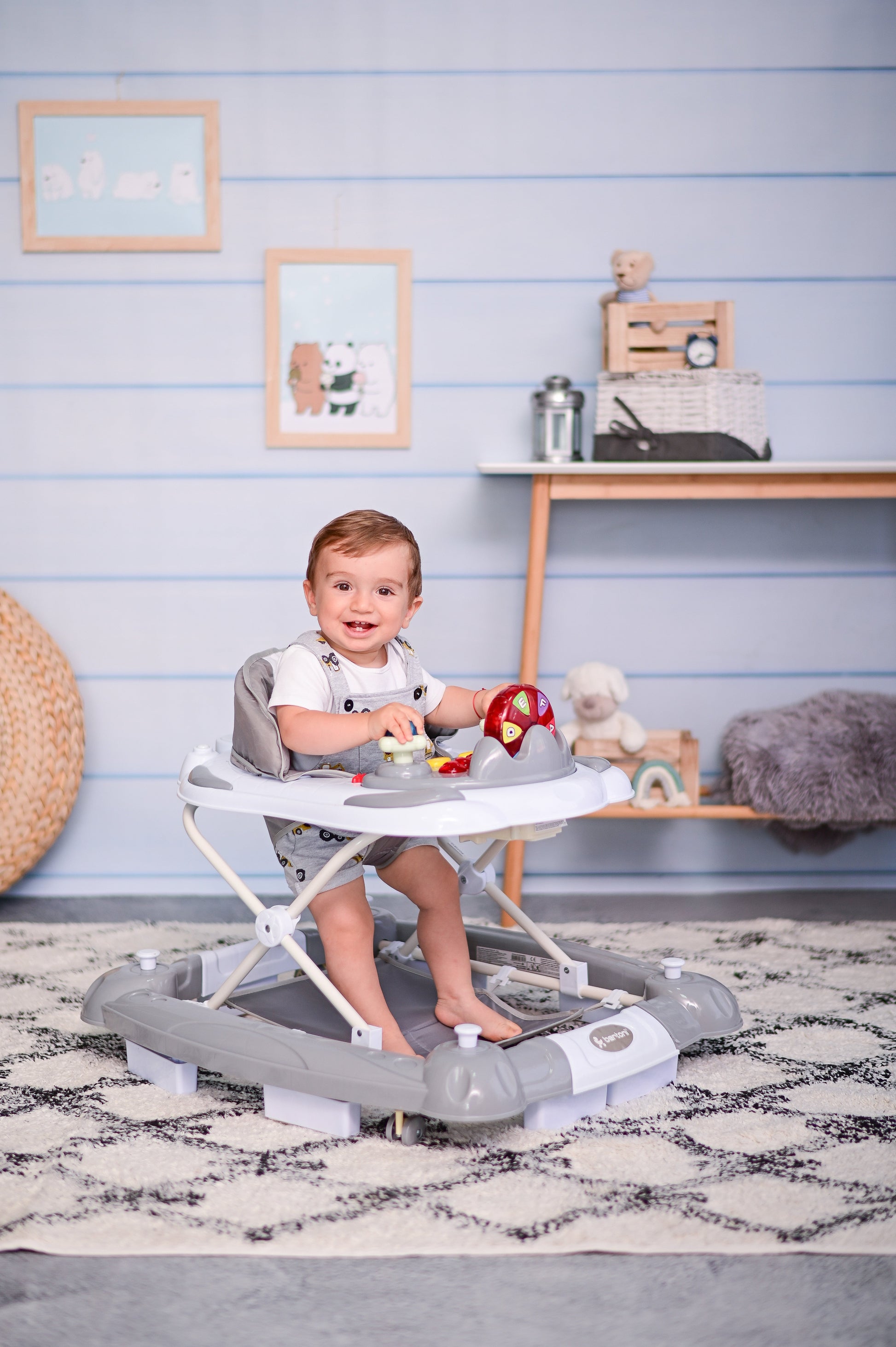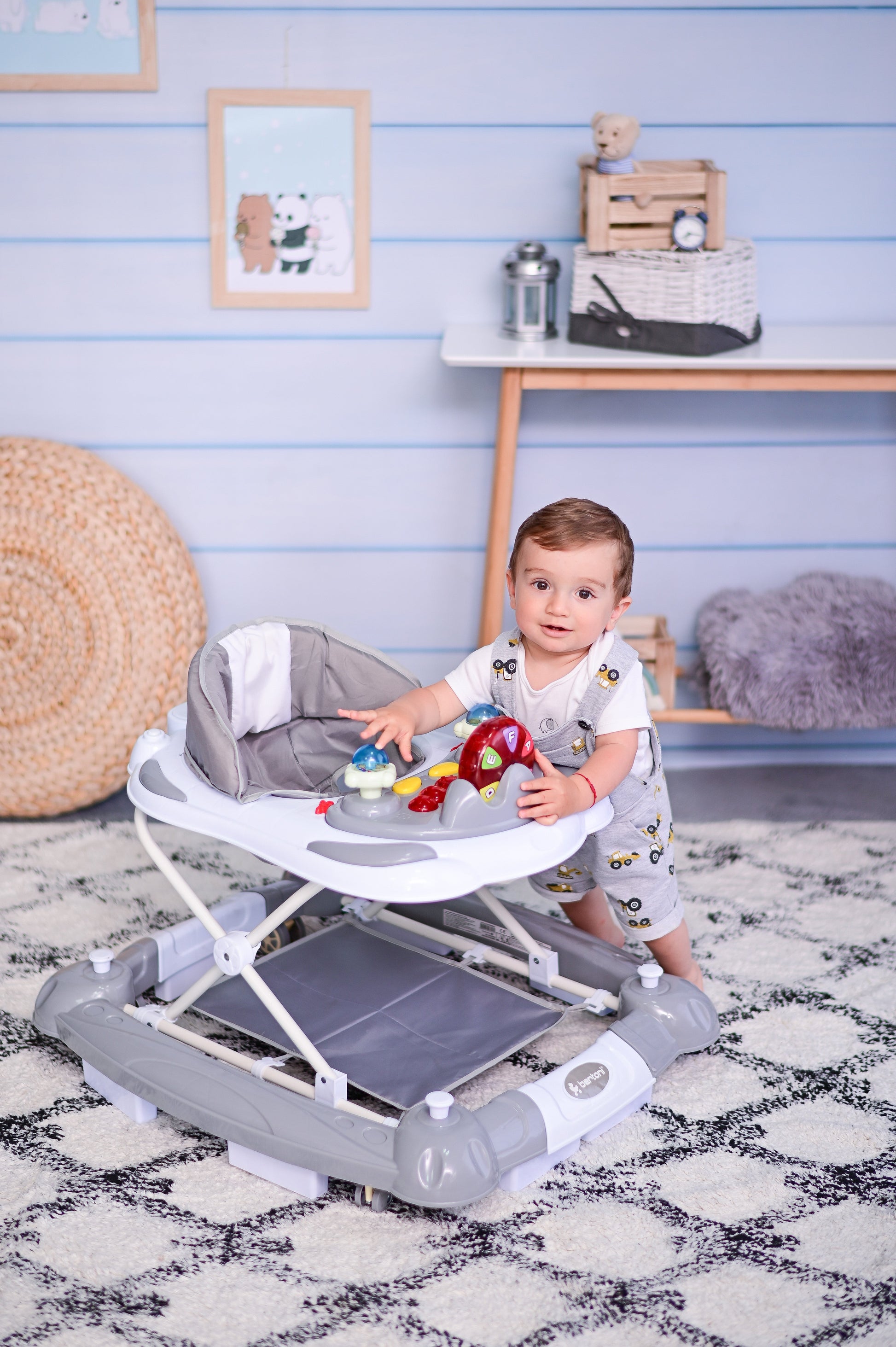 Features: The wide base of the boot ensures safe first steps of the child. The height of the seat is adjustable. Music panel. Base made according to European standards. The edges of the deep base can be turned and turned into a rocking chair, at the bottom of the base there is also a canvas that can be removed later when the child starts to take its first steps. Dimensions: 72 x 65 x 60cm Weight: 4.2kg You can download the original instructions here.